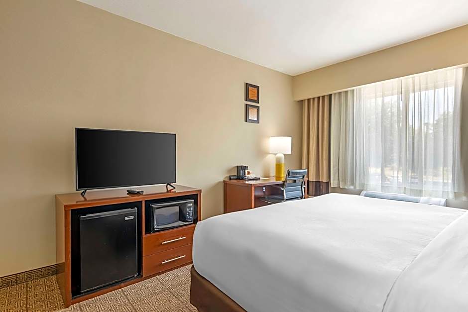 Each room at Comfort Suites Near Vancouver Mall is designed with your comfort in mind. Enjoy amenities such as air conditioning, a private bathroom, and free toiletries for your convenience. The pet-friendly hotel also offers designated smoking areas and facilities for disabled guests. With a range of comfortable features and a prime location near the Vancouver Mall, Comfort Suites is the perfect choice for your next visit to Vancouver, Washington.